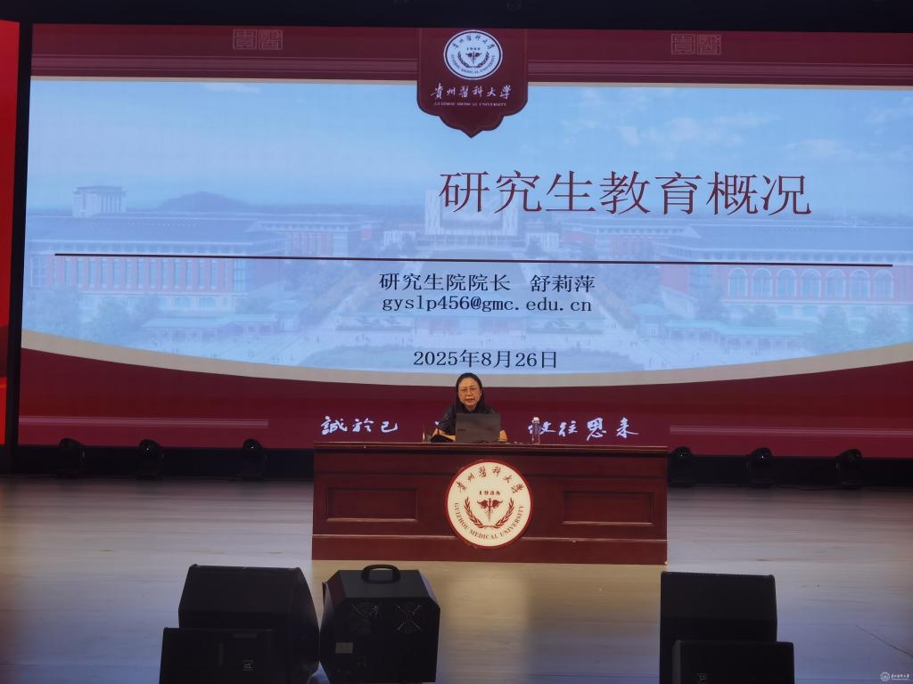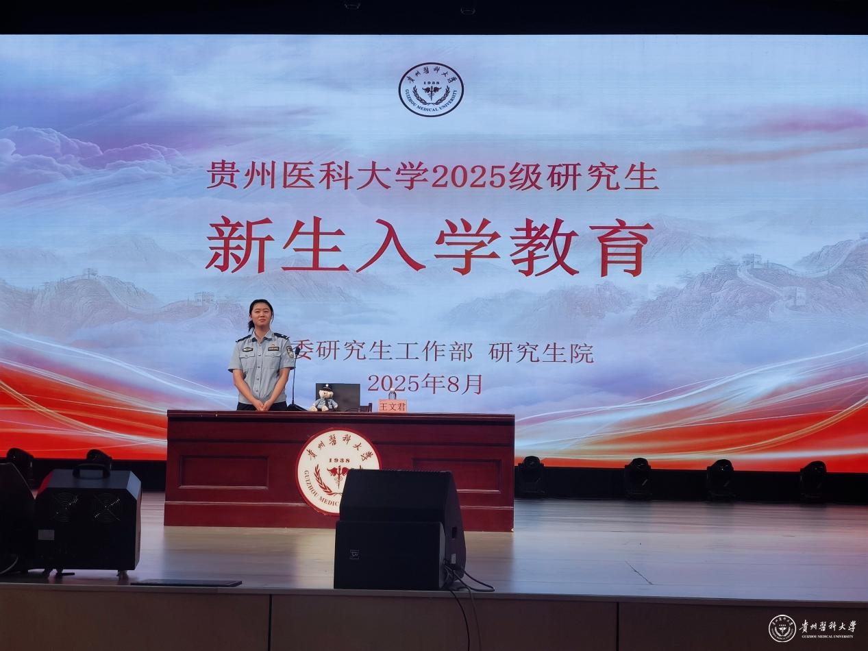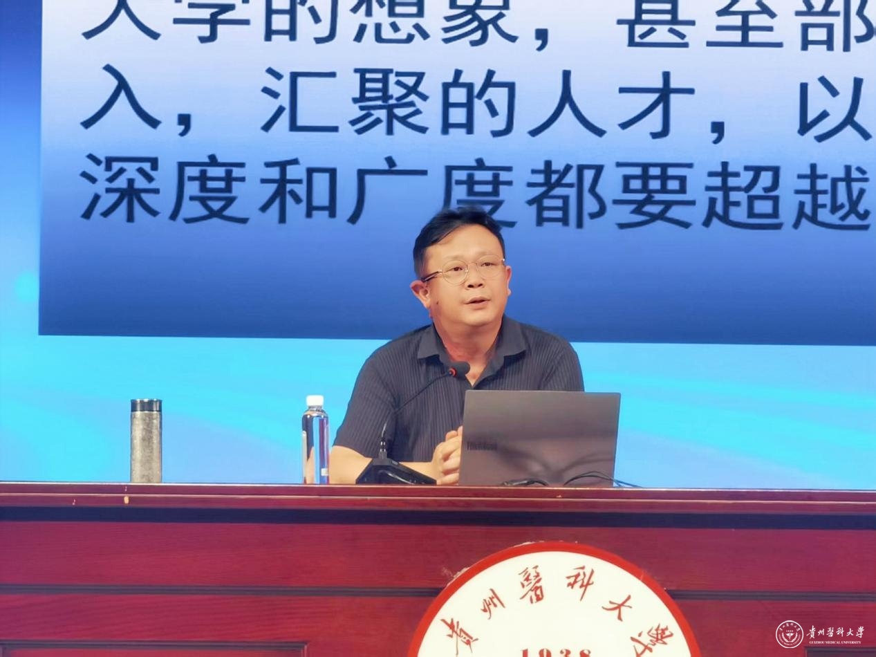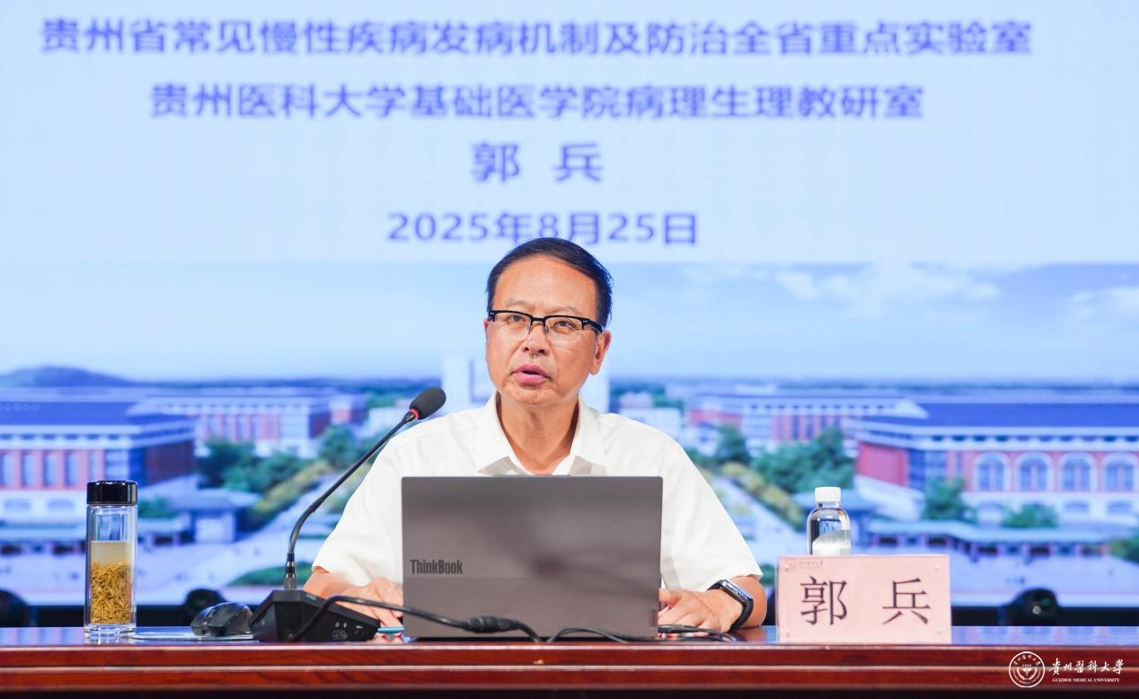 贵州省常见慢性疾病发病机制及药物研究重点实验室主任郭兵教授以《培养科研思维、提升科研能力、坚守科学道德》为题,为新生未来的学术道路打下坚实的思想基础。