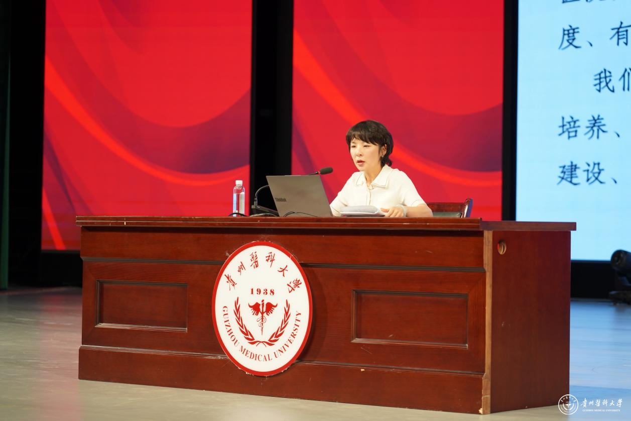 对外合作交流处(港澳台事务办公室)副处长、校友会秘书长、教育发展基金会秘书长彭云以“联结·赋能·共赢”为主题,鼓励新生积极参与志愿服务,践行与传承贵医精神。