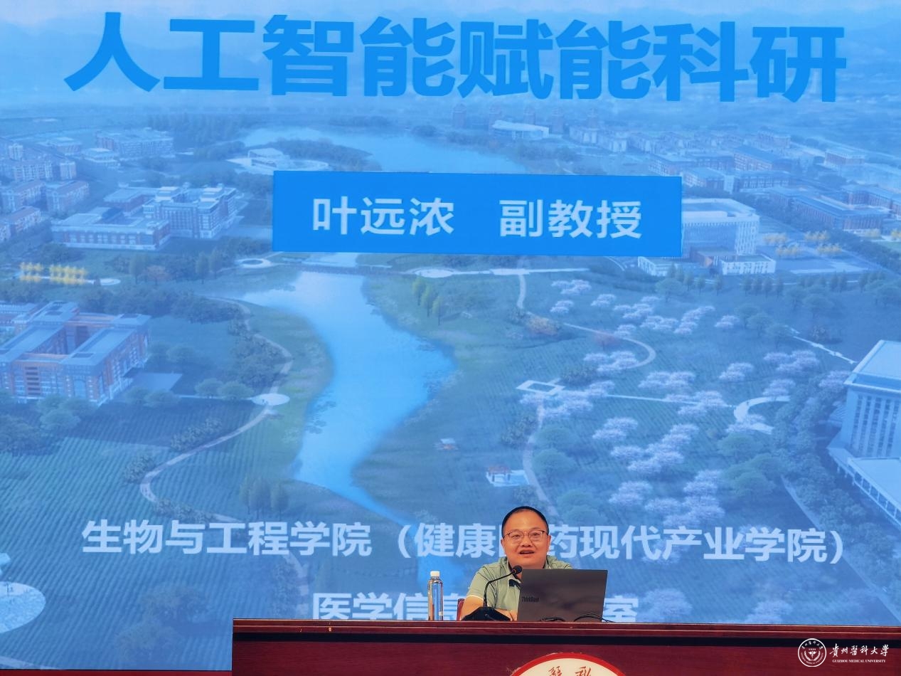 科技创新与产业发展处处长涂波介绍学科竞赛,鼓励同学们积极参与高水平竞赛,挑战自我,锻炼创新与实践能力;教学质量监控与评估办公室主任、教务处副处长修江帆教大家如何高效、高质量的制作和美化科研PPT;生物与工程学院(健康医药现代产业学院)副院长叶远浓指导同学们运用AI技术辅助科研。