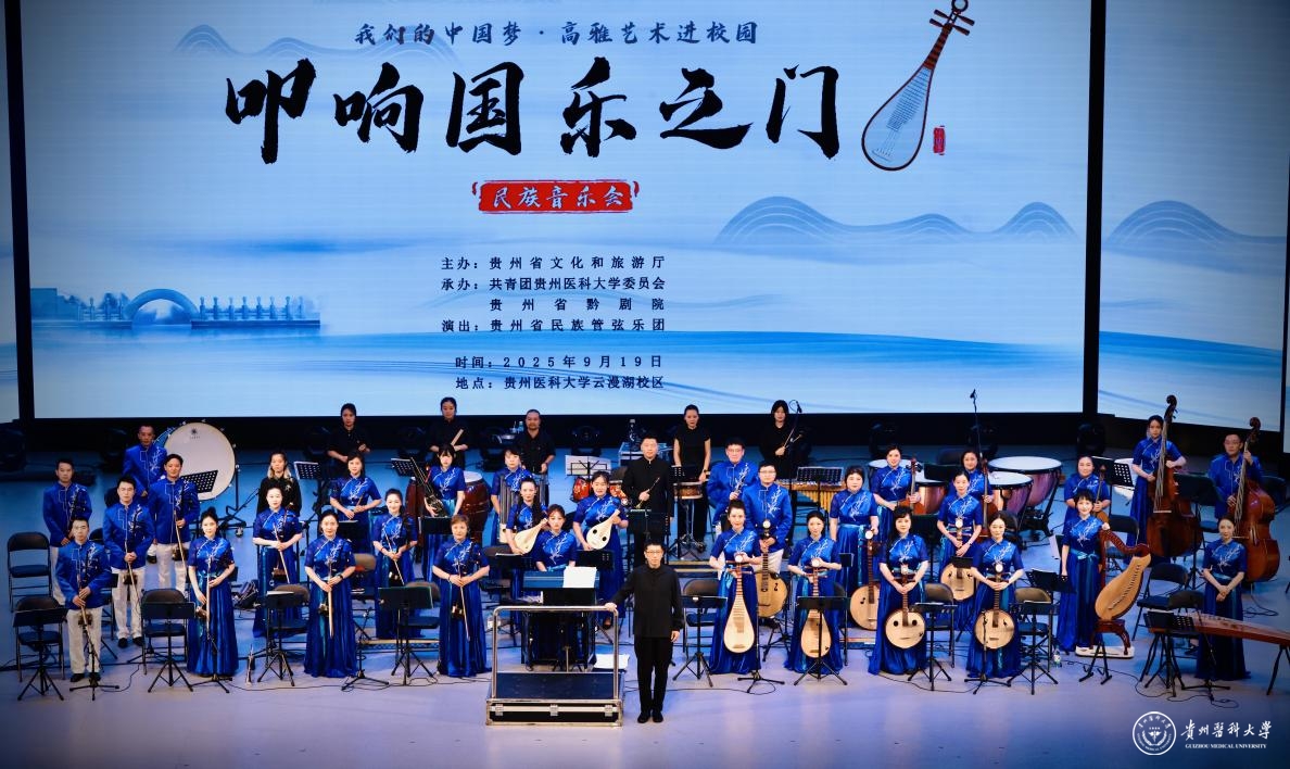 美育赋能·艺术思政育新人。本次活动由贵州省文化和旅游厅主办,学校团委与贵州省黔剧院共同承办,是学校推进美育育人的重要举措。整场音乐会节奏跌宕、情感丰沛,在重塑了传统韵味的同时,也融入了现代表达。这不仅是一场视听盛宴,更是一堂生动的“美育思政课”。