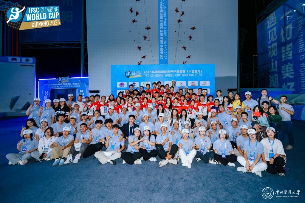 2025年9月12日至13日,国际攀岩联合会(IFSC)攀岩世界杯在贵阳观山湖公园成功举办。来自全球16个国家和地区的近70名世界级攀岩运动员齐聚贵阳,在速度攀岩项目中展开激烈角逐。本次赛事是贵州首次承办攀岩世界杯,也是2025年中国举办的最具影响力的国际攀岩赛事之一。永利官网运动与健康学院积极响应赛事组委会号召,选派42名志愿者全程参与服务,他们以高度的责任心和专业素养为赛事顺利进行提供了有力保障。