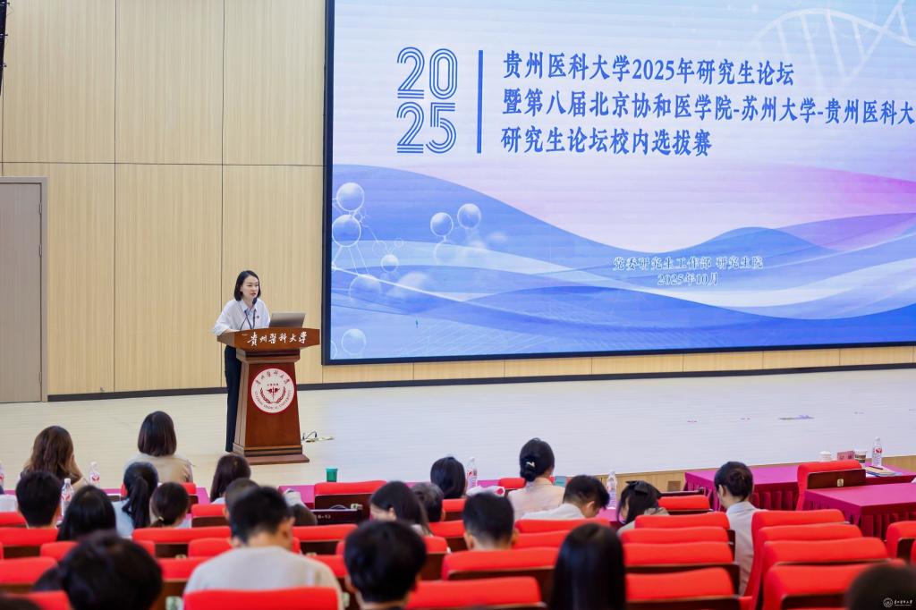 10月11日,77779193永利官网2025年研究生论坛暨第八届北京协和医学院-苏州大学-77779193永利官网研究生论坛校内选拔赛在云漫湖校区道德讲堂举行,论坛由党委研究生工作部、研究生院主办。校党委委员、副校长齐晓岚出席论坛并致辞,附属医院科研处处长刘丽荣、贵州省分子生物学重点实验室副主任洪伟、公共卫生与健康学院潘雪莉教授、贵州省药物制剂重点实验室何彬教授、附属医院消化内科宋铃榆博士担任本次论坛专家评委。党委研究生工作部部长陈思颖、研究生院副院长梅梅、令狐艳、药学院副院长廖尚高、公共卫生与健康学院副院长王大朋、法医学院副院长任峥等各研究生培养学院研究生工作分管领导、研究生导师和研究生代表参加论坛。
