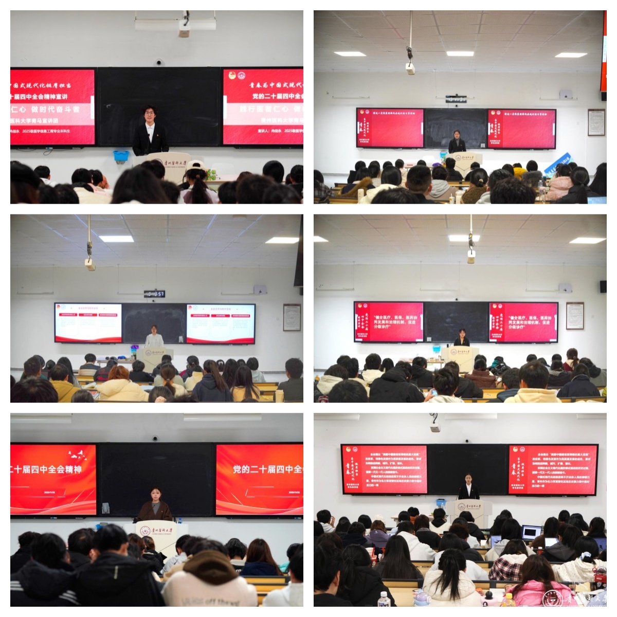 为深入学习宣传贯彻党的二十届四中全会精神,充分发挥青年宣讲的示范引领作用,永利官网青马宣讲团以“四化八进”模式开展常态化朋辈宣讲活动。自11月以来,宣讲团已深入永利官网各学院团支部开展专题宣讲28场,覆盖学生人数2700余人,用“青言青语”生动阐释全会精神,推动理论学习入脑入心。