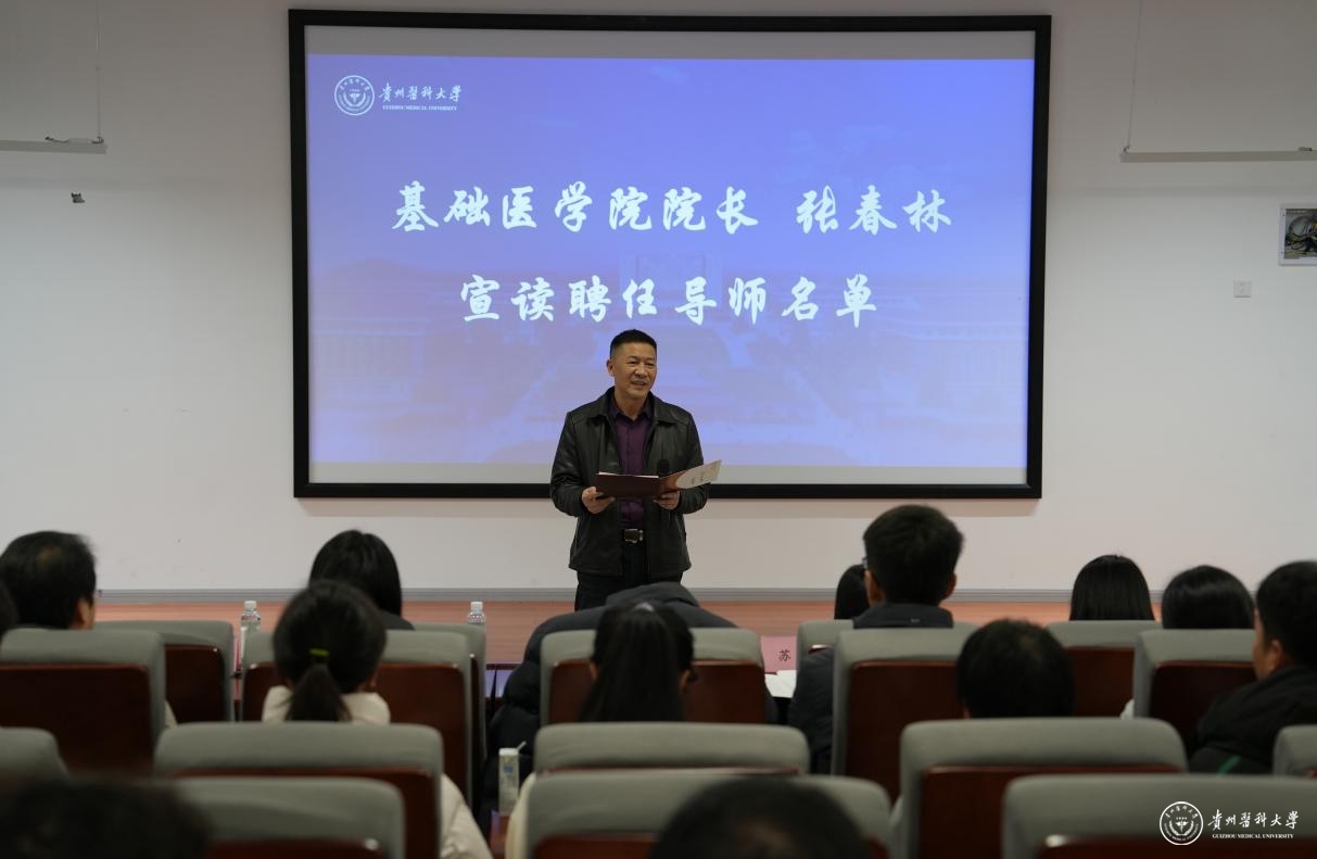 张春林宣读2025级“协和班”导师聘任名单。他详细介绍了导师们的研究方向与学术优势,表示学院将全力支持导师开展工作,为学生匹配优质资源、赋能长远发展注入动力。