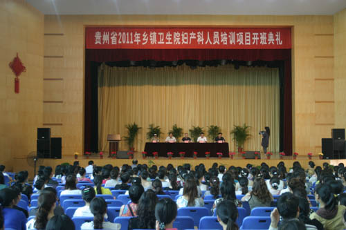7月11日上午9点30分,“贵州省2011年乡镇卫生院妇产科人员培训项目”在永利官网大礼堂进行。贵州省卫生厅副厅长朱征明、贵阳医学院党委书记赵明仁、贵阳医学院副院长刘兴德、贵州省卫生厅农卫处处长钱铭德出席,教学单位贵州省人民医院副院长王建怡、贵阳市妇幼保健院副院长刘建西、贵阳医学院教务处等有关部门负责人、教师和学员代表参加了开班典礼。典礼由钱铭德处长主持。