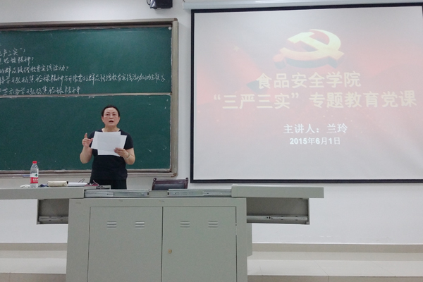 6月1日晚,食品安全学院在明理楼7202教室举办了《学习弘扬焦裕禄精神,践行“三严三实”》专题教育党课,全院党员和入党积极分子一百多人听取了院党委副书记兰玲所作的《学习弘扬焦裕禄精神,践行“三严三实”》主题党课。