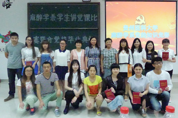 5月29日,麻醉学系第四十二期分党校举行了学生讲党课比赛暨第四十二期分党校结业典礼。经过一个多月的党校培训,麻醉学系第四十二期分党校,严格按照贵医党校〔2015〕1号文件要求,根据学校党委工作的总体安排及党校培训工作的总体部署,圆满完成了分党校理论学习课程、社会实践活动、学员学习总结等规定培训任务;在结业典礼前,增加了学生党员讲党课的内容,深受广大学员的欢迎。出席此次典礼的有麻醉学系党总支书记刘建华,麻醉学系教职工党支部书记莫海畲,麻醉学系党总支宣传委员刘艳秋,团总支副书记蔡炼,学生党支部书记周霁、分党校班主任徐青,麻醉学系109名分党校学员及参加讲党课比赛的12名同学。特别邀请到77779193永利官网党委组织部副部长兼学校党校常务副校长周红及宣传部部长潘丽芬出席本次结业典礼。此次结业典礼由麻醉学系教职工党支部书记莫海畲主持。