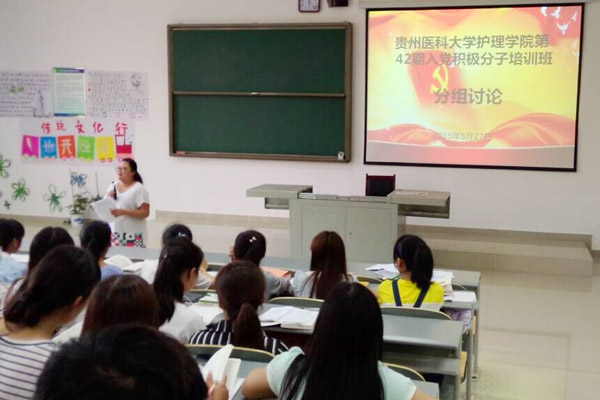 5月27日下午,护理学院第四十二期入党积极分子培训班学员在4106教室对“社会主义核心价值观”及“三严三实”中几个重点内容进行了分组讨论交流。学生党支部书记王晓玲,辅导员毕丽老师参加了活动。活动由14级护理本科胡庆文同学主持。