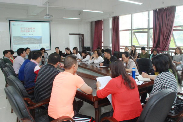 会上,左丽同志传达了贵阳医学院《关于在处级以上领导干部中开展“三严三实”专题教育的实施方案》和《关于举行“三严三实”专题教育启动会暨专题党课》的通知精神,并对各党支部书记提出三点要求:一是带头讲一次党课;二是抓好党员学习培训;三是积极开展学习研讨。通过形式多样的学习认真践行“三严三实”的精神,把三严三实的重要意义和内涵融入到教材、走进课堂。