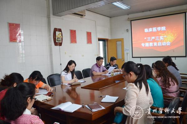 6月17日下午,临床医学院召开了“三严三实”专题教育启动会,全面部署开展“三严三实”专题教育,临床医学院领导班子成员,科级以上干部及各党支部书记参加了会议,会议由临床医学院党委书记李永念主持。