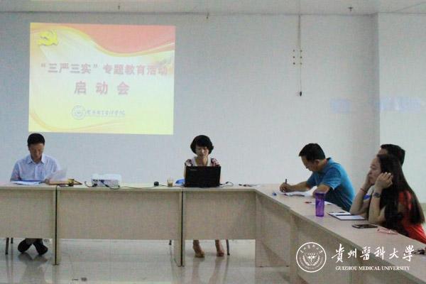 按照学校统一部署,医药卫生管理学院于6月17日上午在北校区召开“一把手”上党课暨“三严三实”专题教育启动大会,学院除有教学任务外的教师全体参加会议。