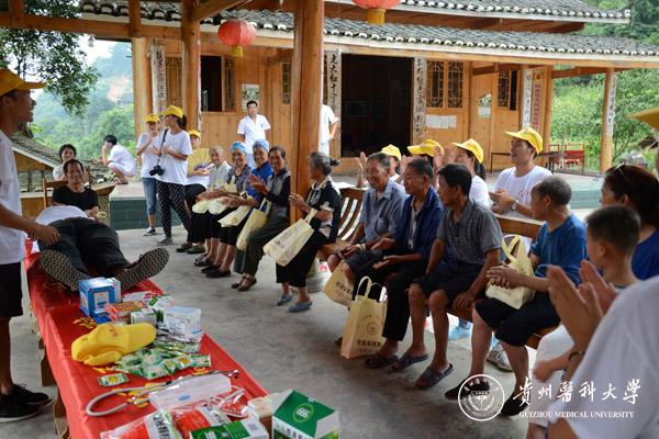 到达目的地后,同学们热情的为村民免费测量血压、发放药品、提供医疗咨询、宣讲健康知识,并就乡情民情做了调查问卷,了解当地村民的生活现状和困难。同学们还主动为当地村民表演了一场精彩的节目,受到了当地村民热烈欢迎。晚上,师生们克服艰苦的条件,自带铺盖住宿在村委会小屋内。7月15日上午,同学们又热心地为当地村民讲解了一些地方病、常见病的预防诊治及健康保健知识,并对当地村民进行溺水急救、心肺复苏培训,并邀请村民参与体验。还深入到农户家中,将准备好的小礼品和文具赠送给乡亲和留守儿童。