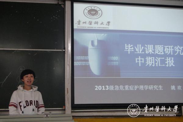 为进一步规范研究生培养工作,提高研究生培养质量,促进师生间学术交流,护理学院于9月22日下午在北校区普教2召开了研究生课题进展中期报告会,护理学2013级7名同学就毕业课题完成情况、课题进行中存在的问题、后续工作计划等进行了汇报,并报告了培养计划完成情况。