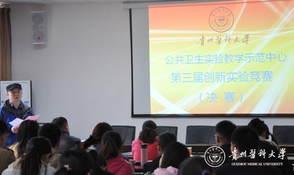 11月25日下午,公共卫生实验教学示范中心第三届学生创新实验竞赛决赛在博雅楼二楼学术报告厅拉开帷幕。决赛由公共卫生学院常务副院长洪峰教授主持,评委由公共卫生学院聂四平教授、潘雪莉教授、韦艳教授、严征教授、殷明月副教授组成。