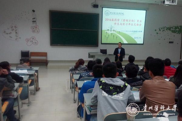 为给学生提供一个质优、面广的实习单位,提高就业率,11月26日下午15:00,医药卫生管理学院在4604教室成功举办了2016届药学(营销方向)专业学生与实习单位第一次见面会,贵州芝林大药房零售连锁有限公司和中美华东制药有限公司先后参加了本次会议,本次会议由教研科李端科长主持。