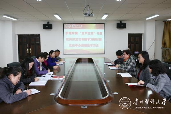 研讨会上首先学习了《镜鉴—贵州省“三严三实”专题教育警示录》部分内容及《中国共产党廉洁自律准则》,传达了学校“三严三实”专题教育第三次专题学习研讨暨党委中心组第四次理论学习会精神。随后护理学院党委班子成员紧紧围绕“严以用权,真抓实干,实实在在谋事创业做人,树立忠诚、干净、担当的新形象”主题,结合自身实际进行了深入的自我剖析。常务副院长郭永洪、副院长刘志燕作了重点发言,其他班子成员作了讨论发言。讨论结束后,领导班子就严格考勤、绩效发放等事宜作了通报,各职能科室负责人就分管工作的近期情况作了汇报。