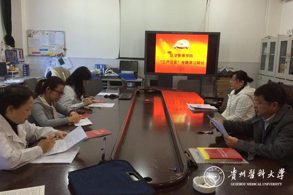 会议集中学习了《习近平总书记在中共中央政治局第26次集体学习时的讲话精神》、《中国共产党廉洁自律准则》、《中国共产党纪律处分条例》等文件精神。会上,医学影像学院副院长李兴还就“严以用权”主题做了中心发言,与会人员进行了交流发言。