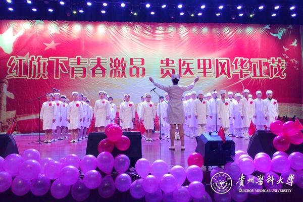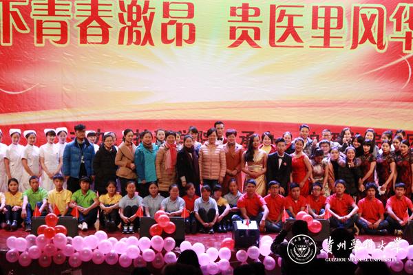 12月8日晚7:00,护理学院在大礼堂举办了“红旗下青春激昂·贵医里风华正茂”纪念“12·9”暨迎新文艺晚会。出席本次晚会的有护理学院党委书记贾秀英、党委副书记杨英、常务副院长郭永洪、综合办公室主任张黎、分团委书记金晶、教学科研管理科科长王秀红、学生科科长曾敏、生产实习科科长柳忠燕、护基教研室教师王芸芸、辅导员王晓玲、李海林、毕丽,以及来自各院系的学生会代表。