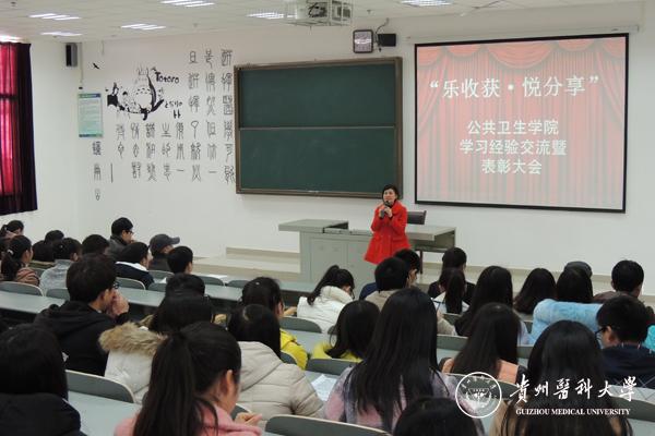2015年12月31日,公共卫生学院师生集聚一堂,在4505教室举办了一场以“乐收获·悦分享”为主题的经验交流暨表彰大会。此次活动旨在进一步促进广大公卫学子对本专业的了解及热爱,提高同学们的学习兴趣及专业关注点,激发他们参与各类专业技能大赛的热情,并希望通过此次经验交流会与低年级同学们分享学习和竞赛的心得体会。