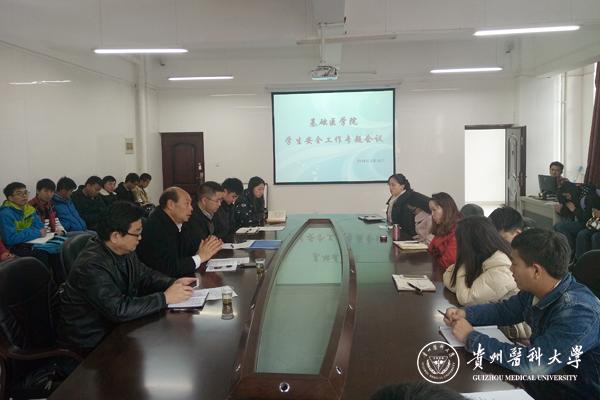3月10日,基础医学院召开学生安全工作专题会,学校保卫处处长刘强、基础医学院党委书记徐国强、党委副书记廖兴江以及全院辅导员及学生代表40余人参加了会议,会议由廖兴江主持。