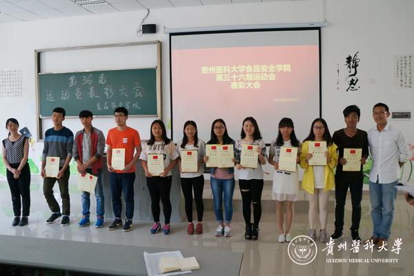 在永利官网第36届运动会中,食品安全学院全体运动健儿发挥顽强拼搏、奋勇争先的精神,最终获得学生组团体总分第六名,广播体操第三名以及太极拳第六名的好成绩。为认真总结,表彰先进,5月10日,食品安全学院在明理楼7203教室举行总结表彰大会,辅导员陈卫娅、原琦老师以及全院学生参加了表彰大会。