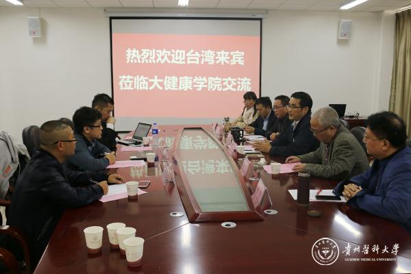 11月1日,台湾天来诺亚克股份有限公司执行长沈家平、台湾天来创新生活产业股份有限公司总经理王人星、贵州腾迈智医大数据科技发展有限公司杨华一行莅临永利官网大健康学院交流访问。副校长罗鹏出席交流会,大健康学院党政领导班子及教师代表参加。