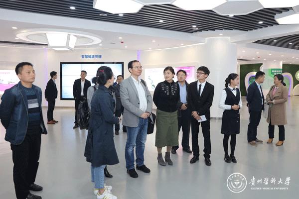 大健康学院、基础医学院、科创处、计信中心有关单位负责人就大健康、大数据发展建设情况及工作经验与做法,分别结合本部门工作实际及工作经验分别作了介绍,随后,双方参会人员进行了交流讨论,在大健康及健康大数据等工作上形成了很多共识,并参观了贵州省大健康(产业)展示中心。
