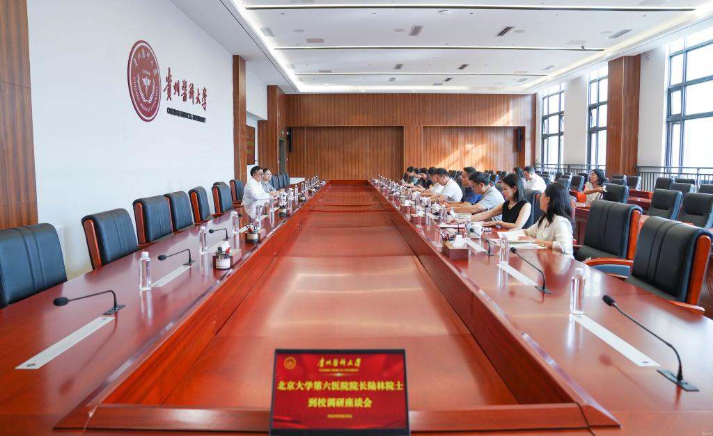 罗鹏代表学校对陆林院士一行的到来表示热烈欢迎,感谢北京大学第六医院对学校及附属医院发展的关心和帮助,并介绍了学校整体发展情况。他指出,北大六院在精神心理疾病临床科研教学及社会心理服务体系建设等方面有丰富的经验,是国家精神卫生和心理健康事业的标杆,有很多方面值得学校及附院借鉴学习。希望北大六院和陆林院士团队在人才培养、学科建设、科学研究和医疗技术上给予大力支持,通过院校双方不断地交流合作,为护佑贵州人民健康、促进医学教育和医药卫生事业发展贡献了智慧和力量。