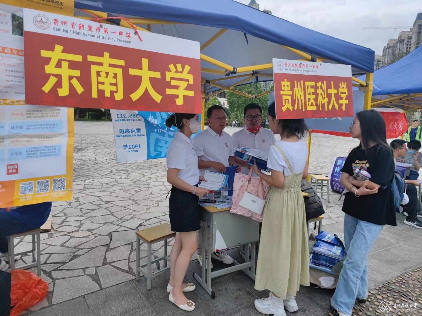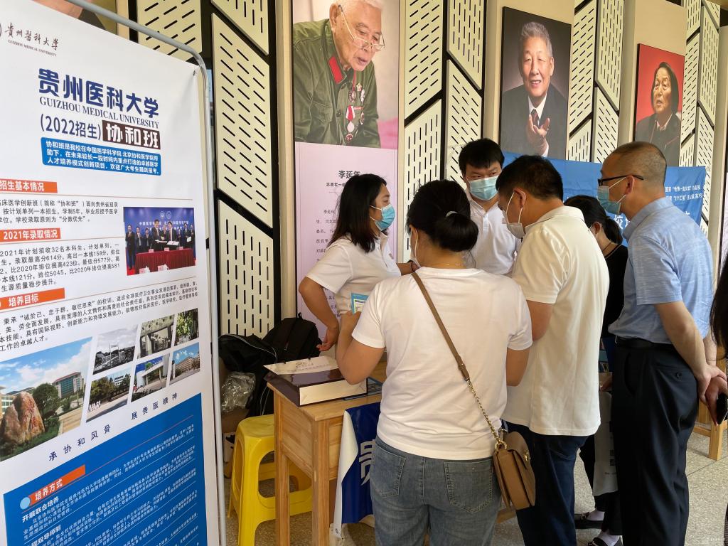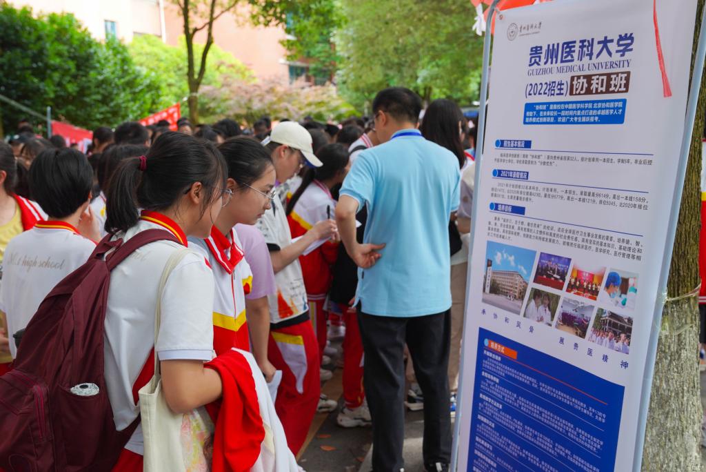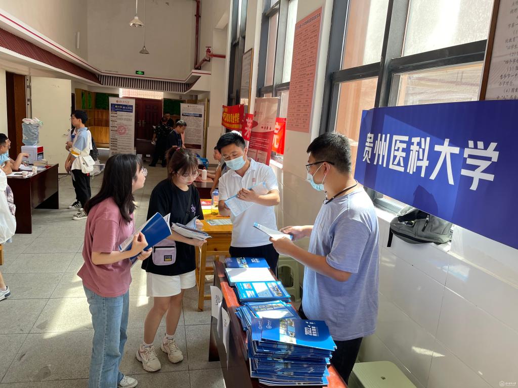 本年招生宣传采取线上线下相结合的方式,6月12日起,学校通过“动静贵州”、学校官网、微信公众号、“阳光高考”“贵州省 2022 年高考网博会”等线上渠道分类推送招生信息,宣传学校办学条件、办学特色、招生情况等内容。在招生就业处开设招生热线电话,及时解答家长及学生的咨询,为广大考生提供最便捷快速的咨询服务;6月24日至6月26日,由校领导、部分职能部门负责人、各学院党政班子成员及辅导员等组成的线下招生宣传工作组,分别奔赴省内各地(州、市)重点中学开展宣传及现场咨询工作,走访了贵阳一中、遵义四中、安顺一中、铜仁一中、凯里一中、毕节一中、都匀一中、思南中学等14所示范性重点高中,认真细致地为考生及家长介绍永利官网2022年学校本科招生计划、招生政策,重点宣传永利官网开办的临床医学创新班(简称“协和班”)以及各学院的专业设置、师资队伍与人才培养、学科建设、科研进展、学生管理等情况,发放招生宣传材料近万余份,宣传工作取得良好效果。