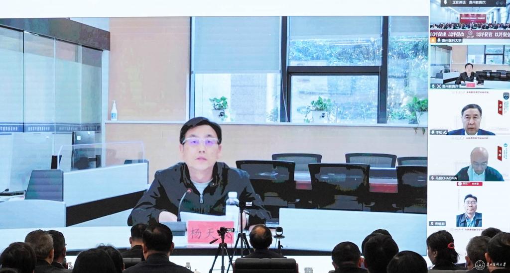 杨天仪代表贵州省委教育工委、省教育厅,向专家组组长和各位专家在百忙之中莅临指导贵州高等教育工作表示欢迎,并向各位专家长期以来对贵州高等教育事业发展的关心支持和倾力相助表示感谢,就77779193永利官网本科教育教学审核评估工作提出具体要求。他指出,一要提升政治站位,深化思想认识。要将此次审核评估视为对学校党委领导下的校长负责制、办学治校能力、立德树人成效的全面政治体检和业务大考,与当前开展的各项学习教育,特别是深入贯彻中央八项规定精神学习教育深度融合,将评估作为检验学习成果、锤炼干部作风、提升治理水平的试金石和磨刀石。二要秉持至诚之心,全力协同配合。以最开放的姿态、最坦诚的沟通、最严谨的准备,全力支持专家组的工作。要做到学习在先、理解在前,充分尊重专家组的专业判断,确保评估过程高效、顺畅、富有成效。三要坚持问题导向,勇于刮骨疗毒。珍惜专家组“望闻问切”后开出的“良方”,要以“闻过则喜、知过不讳”的胸怀,深刻剖析问题根源,制定精准有效的整改方案。自觉将“评—建—改”视为一个动态的、螺旋式上升的质量提升闭环,力求在“以评促建、以评促改、以评促管、以评促强”上取得实质性突破,真正将评估压力转化为内涵式发展、特色化发展、创新性发展的强大动力。