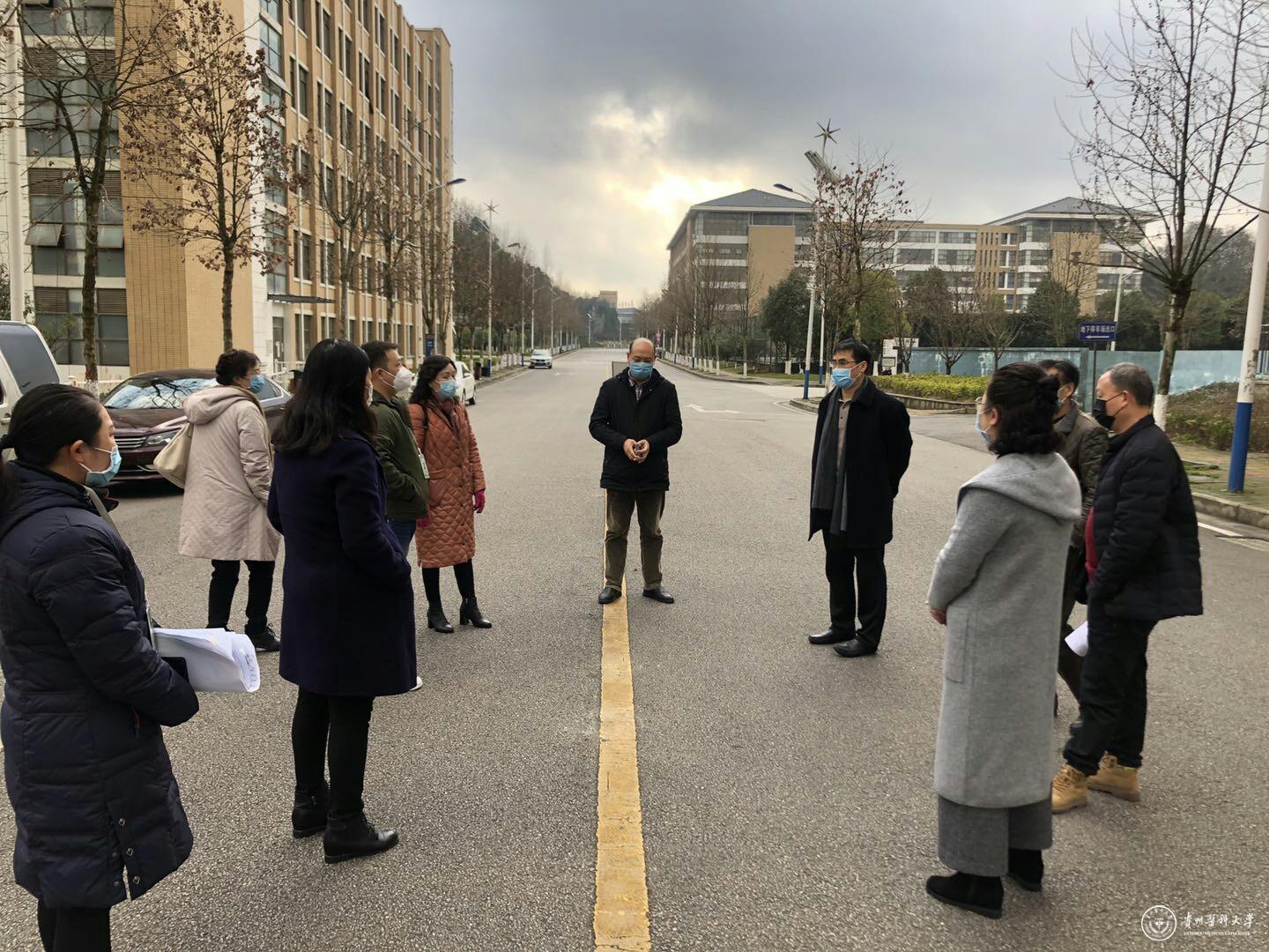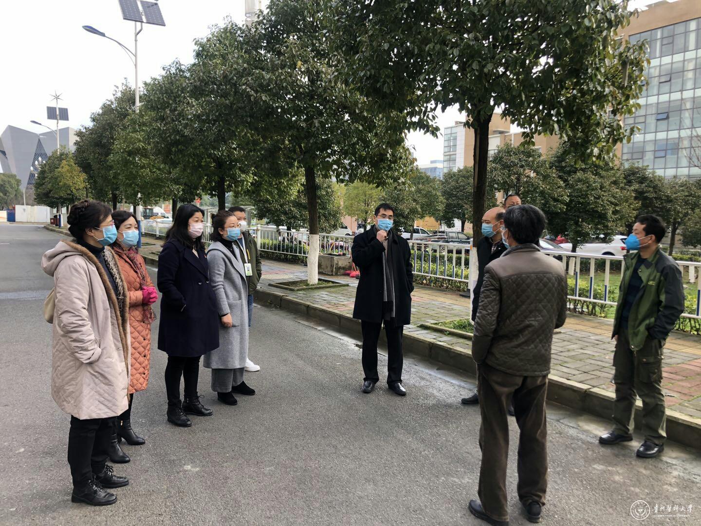 罗鹏一行察看了学校门岗、公租房、大学城医院、学生宿舍等区域的管理情况,并对校园实施封闭式管理进行了现场调研和布置。在疫情防控工作推进会上,罗鹏高度肯定了相关职能部门顾全大局和听从指挥的工作作风,向奋战在学校战“疫”一线的工作人员表示关心慰问并致以崇高敬意。