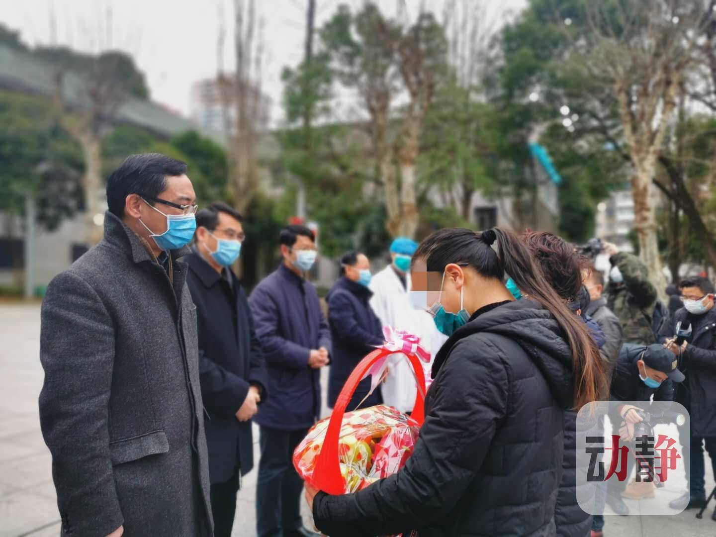 在现场,今天出院的朱女士哽咽着对记者说,“我是重症病人,又从武汉回来传染了家人,心理压力真的很大,感谢医护人员精心的治疗和鼓励,正是强大的祖国和敬业的医护人员给了我信心,让我重获新生,谢谢!”朱女士说她在网上看到最新的研究成果,治愈病人的血浆可能用于治疗,“如果我的血浆符合标准,我会第一时间报名志愿献血!”
