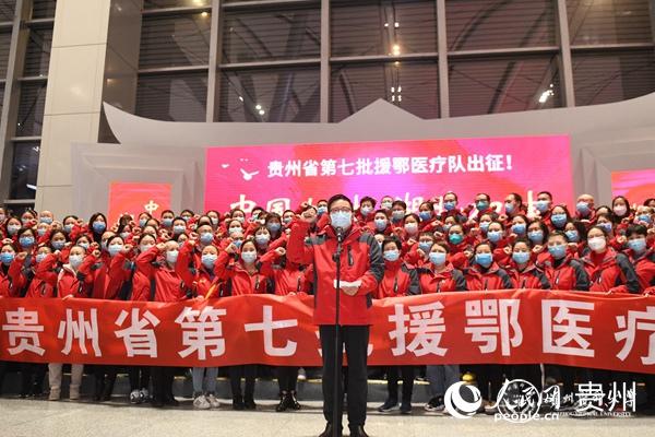 截至目前,贵州已派出七批医疗队1000余人支援湖北,并尽最大力度做好各项保障工作。2月19日晚,第七批援鄂医疗队147名队员出征,支援武汉新冠肺炎疫情医疗救治,众志成城、守望相助,共同打赢疫情防控阻击战。