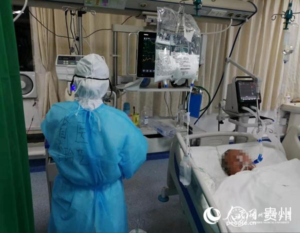 贵州医务人员李玲艺正在给湖北患者进行护理。贵州省人民医院供图