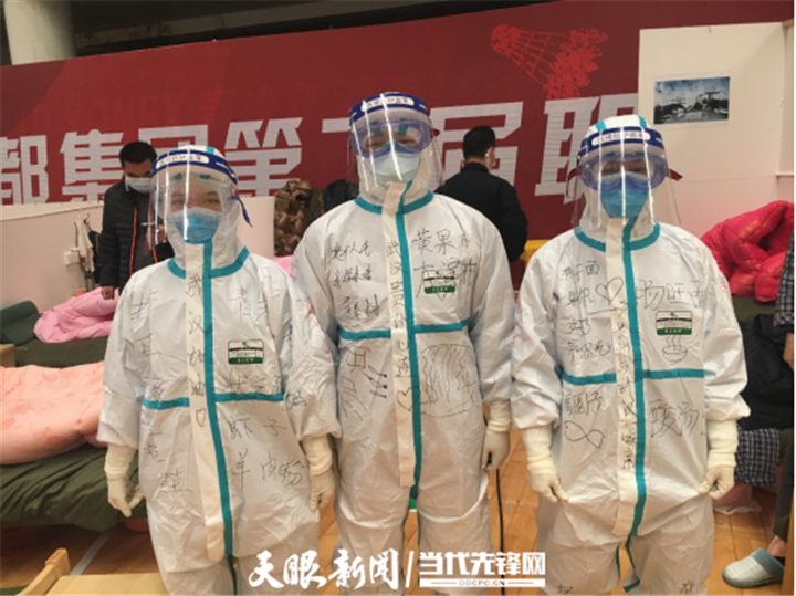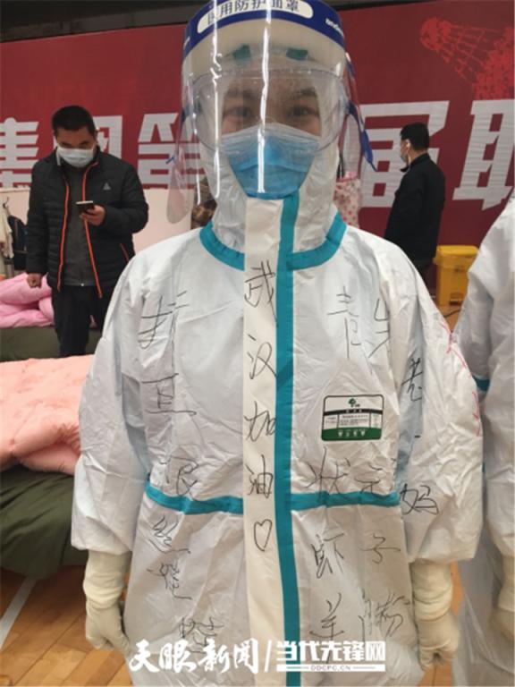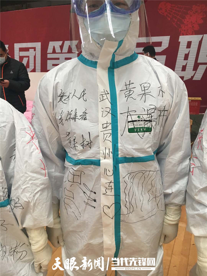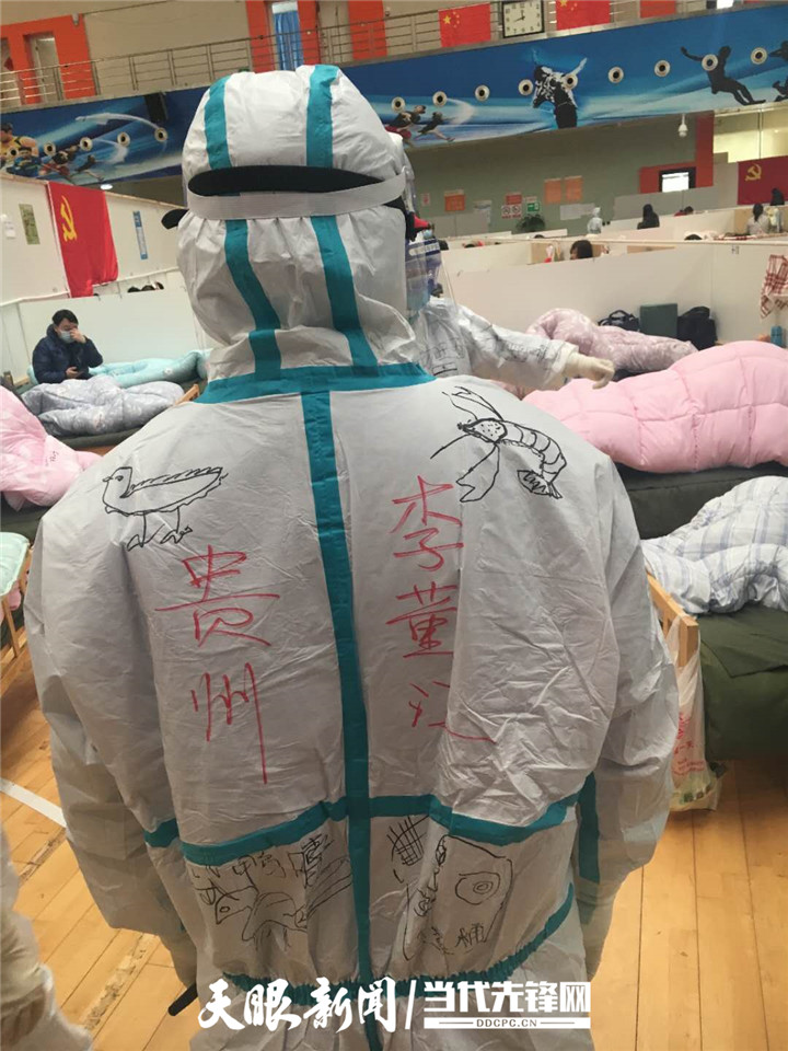 “我们的防护服是不是很漂亮?这都是患者给我们画的。”国家紧急医学救援队(贵州)队员、77779193永利官网附属医院心内科护士李董江笑嘻嘻地告诉记者,昨天他们跟患者来了一场别开生面的涂鸦赛,让武汉涂鸦和贵州涂鸦来了一次生动的“碰撞”。