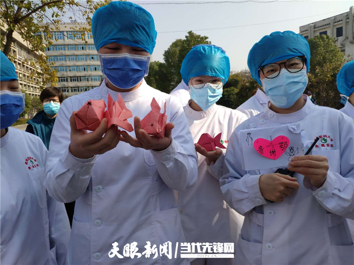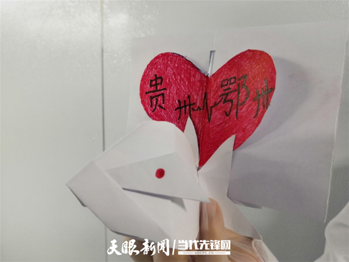 为了庆贺他们出院,贵州医疗队医生三组和护理一组的医护人员自制爱心贺卡,表达祝愿之情。