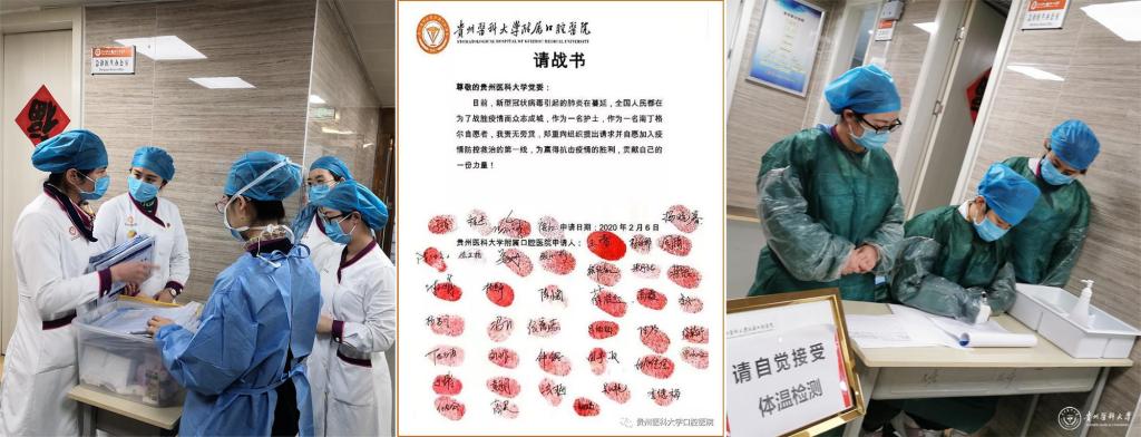 面对严峻的新型冠状病毒肺炎疫情,口腔综合急诊科按照上级有关要求,坚持把疫情防控工作作为科室当前最重要的工作。支部委员团结带领全科党员干部和医护人员,坚守初心、牢记使命,高度重视、迅速行动,支部党员以实际行动克服困难,为民服务解难题,让党旗在疫情防控一线高高飘扬,展示了新时代贵医口腔人的使命和担当。