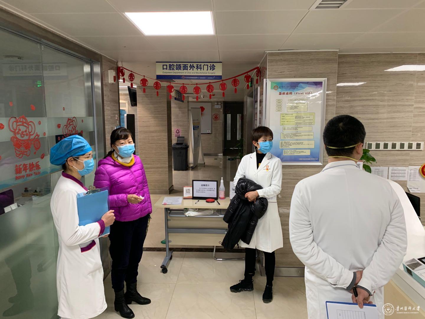 1月24日,贵州省人民政府决定启动突发公共卫生事件一级响应,2月1日,贵州省卫生健康委员会下发通知,由于口腔专科在诊疗过程中,医患双方面部长时间超近距离接触,高速涡轮手机及超声治疗器械等专科设备在工作时产生大量水雾、飞沫及气溶胶,常规防护措施不能有效防止病毒传播,隐瞒病情或者潜伏期患者在不知情的情况下就诊并进行口腔诊疗操作,极易导致疫情传播,为此,附属口腔医院施行了一系列疫情防控措施保证特殊时期临床诊疗工作开展。
