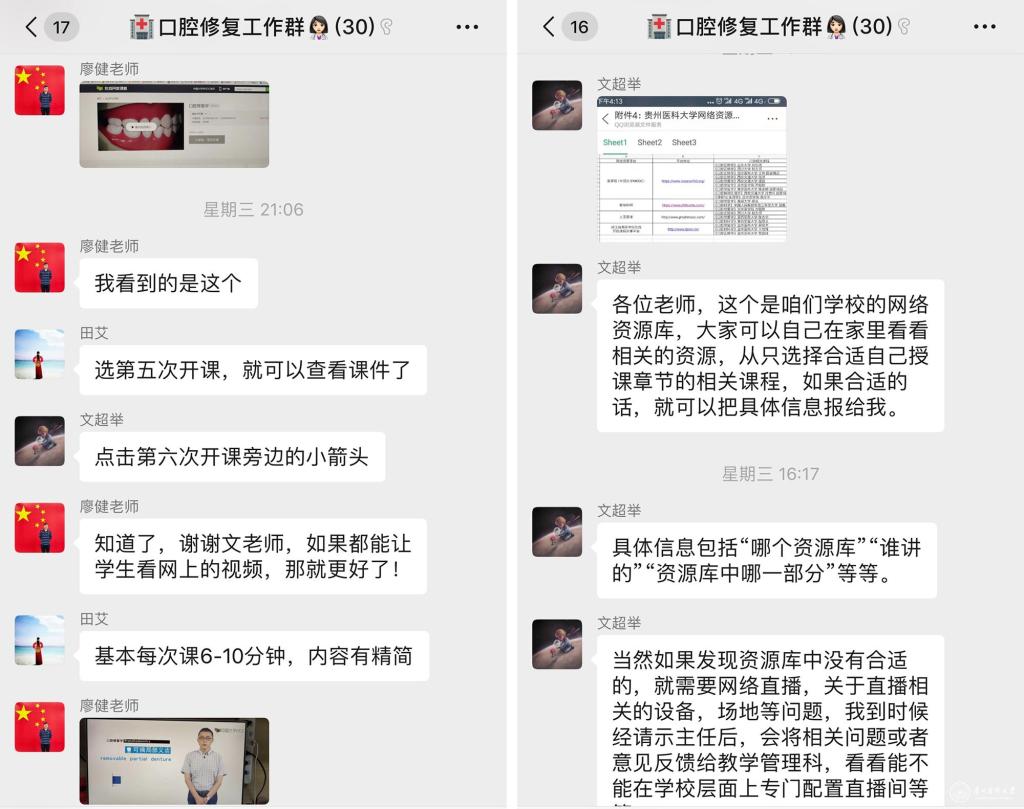 科室学习上级有关精神、防控知识、典型事迹,积极营造良好氛围,掌握最新疫情防控知识,传播抗击疫情的正能量;鼓励年轻医生积极撰写有关新型冠状病毒肺炎下的口腔门诊职业防护等综述,并完成投稿2篇。2月13日、2月20日由教研室主任刘洪静线上主持,组织口腔医学教研室老师使用钉钉办公APP开展教学视频会议,做到“延期开课不停学”。