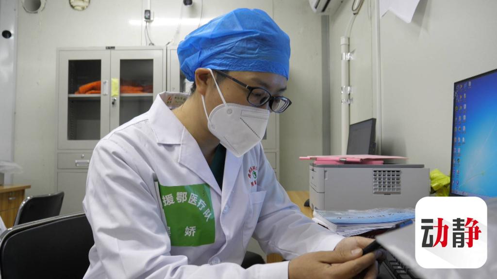 贵州援鄂医疗队队员、六盘水市人民医院呼吸内科主治医师吴娇正在与患者视频连线,她向记者介绍道:“在雷山医院,医生们除了要通过查房了解患者病情之外,还会采用手机连线等方式了解患者的动态信息。”
