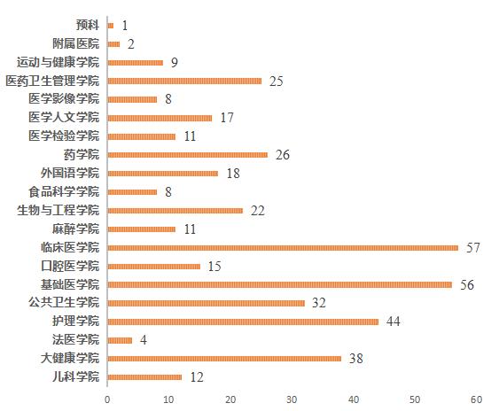 在对学生学习信息的统计分析中发现,永利官网有416名在校生不具有线上学习的硬件或软件条件,占在校生总人数的1.98%,分布于各个学院,其中基础医学院(56人)和临床医学院(57人)的人数较多(图15)。虽然这部分学生所占比重不大,但应引起学校和各学院的关注,并积极协助其解决线上学习困难,使其不停学,不掉队。