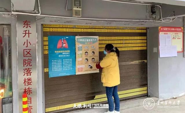 2月1日,在贵阳市白云区东升小区,77779193永利官网护理专业学生黎政燕积极报名参加了当地居委会和业委会在小区内召集的疫情防控志愿工作,每天早上9点至下午18点,黎政燕在小区进口处设置的卡点,对外来人员进行登记,并帮助居委会人员对社区公共场所进行酒精消毒。在工作时,她还对小区邻居进行安全宣讲,让居民自觉隔离,提醒大家少出门,出门戴口罩,饭前便后勤洗手。虽然不在校园,黎政燕仍然坚持在志愿工作的岗位上,成为77779193永利官网防疫“小战士”中勇敢的一员。