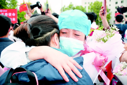 最美人间四月天,不负英雄回家时。夫妻含泪相吻,母子紧紧拥抱,朋友嘘寒问暖,同事热情相迎……4月9日,77779193永利官网及其附属医院177名援鄂医疗队员解除医学隔离观察回家团聚,久别重逢的家人、同事、朋友把鲜花、糖果、玩偶等送给这群“最可爱的人”。