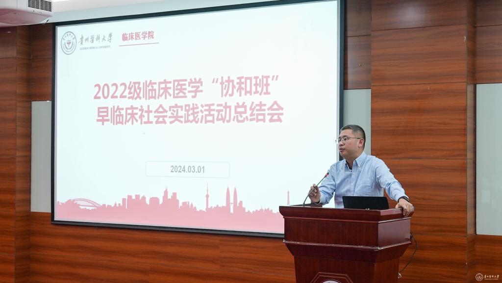 李海洋对同学们在早临床社会实践中的学习表现给予肯定,并通过事例分享,强调作为医护工作者,要以厚德载物的人文精神于细节处修仁爱之心。要知敬畏,知其可为知其不可为,才能在大有可为的时代大有作为。他希望同学们明确目标,团结协作,勤学不倦,笃行不怠,医者仁心,胸怀天下,将个人的理想追求融入党和国家事业发展的大局中,以真才实学服务人民,成长为国家栋梁之材,为祖国医药卫生事业的发展和人类身心健康奋斗终生。