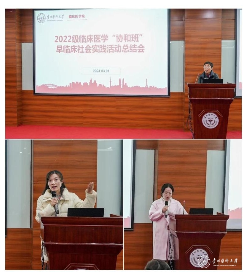 会上,同学们分成四组以PPT形式对早临床社会实践活动进行交流汇报。同学们表示,参加本次早临床实践受益匪浅。整个过程严谨、充实,充分展现了2022级“协和班”团结友爱、乐学善思、感恩奋进的精神风貌,得到与会领导和各位老师的高度肯定。