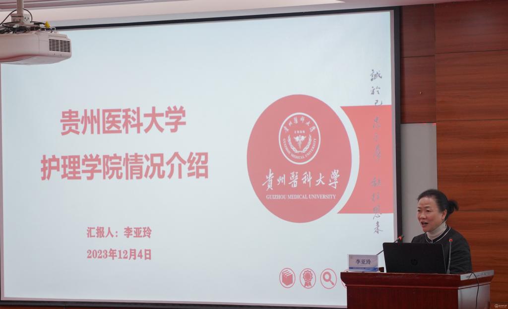 永利官网护理学院院长兼附属医院护理部主任李亚玲介绍学院发展情况,希望通过此次交流活动进一步推进学校护理学科的高质量发展。