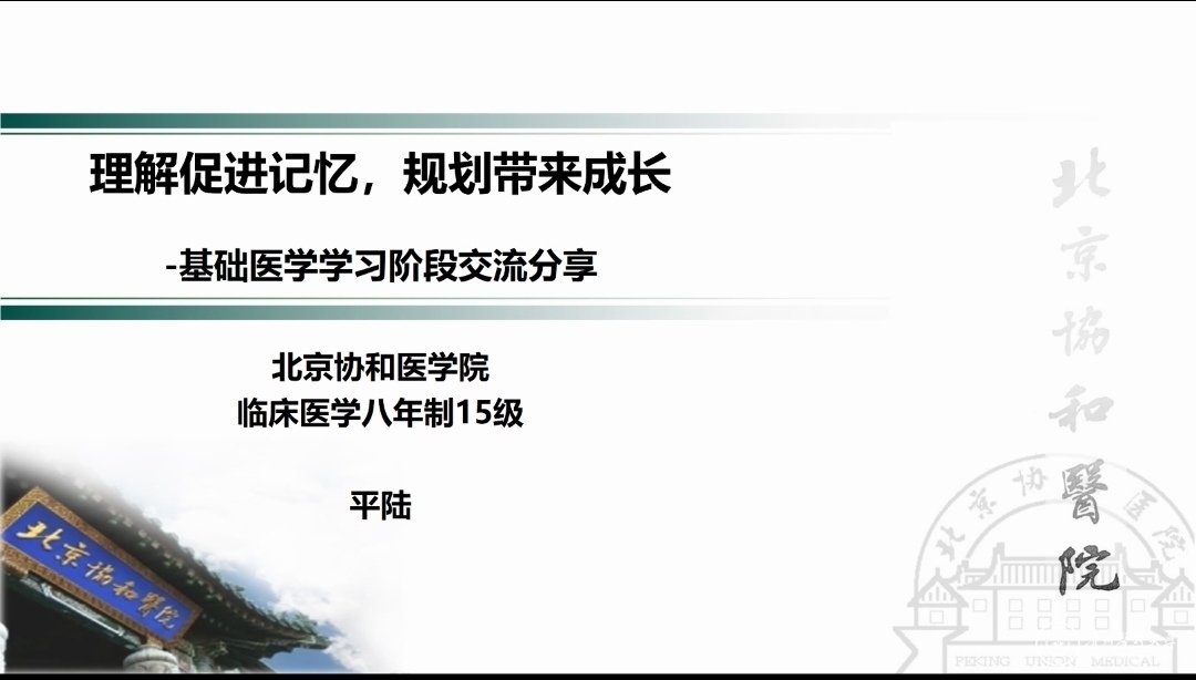 平陆以“理解促进记忆,规划带来成长”为主题,结合学习经历向大家分享了自己的学习经验。