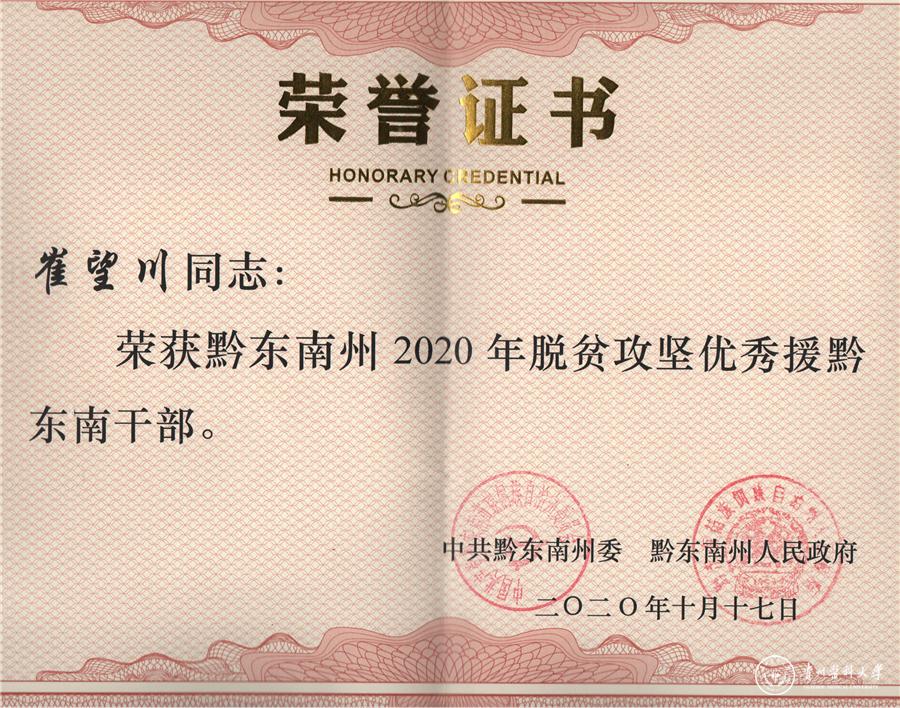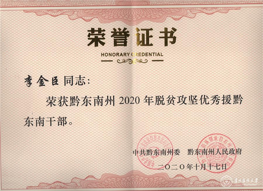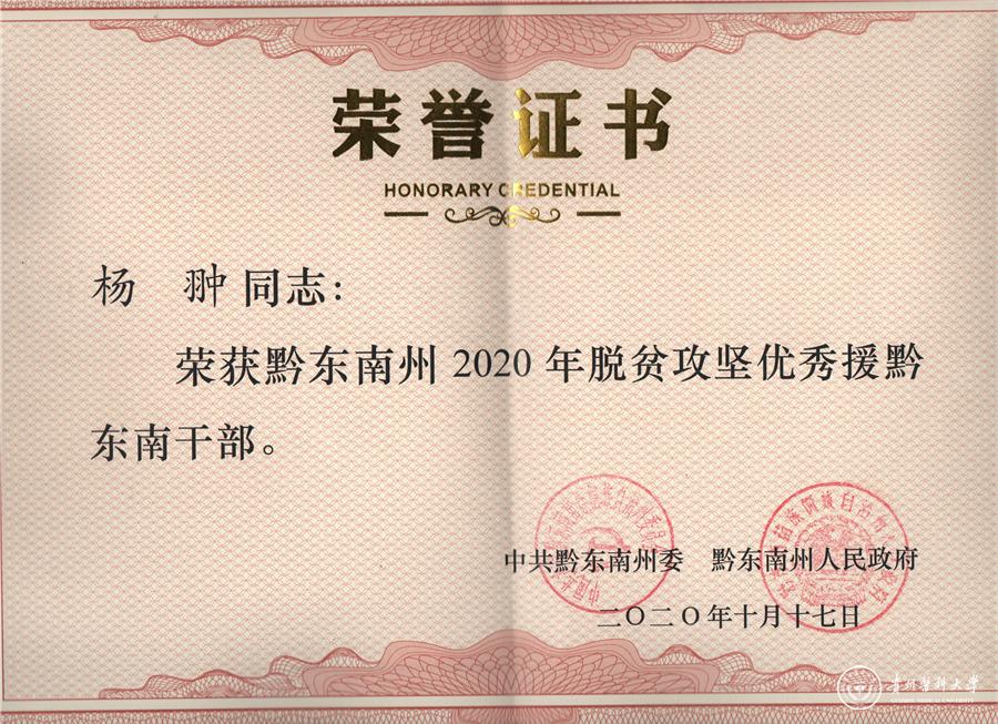在第七个国家扶贫日到来之际,黔东南州委州政府表彰了在全州2020年脱贫攻坚工作中做出突出贡献的先进个人,永利官网驻村帮扶队员:运动与健康学院孟立科、保卫处李金臣、药学院杨翀、基础医学院肖朝伦、第二附属医院崔望川等五位同志荣获“黔东南州2020年脱贫攻坚优秀援黔东南干部”称号。