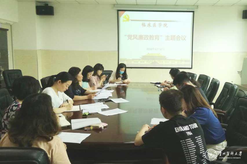 6月12日,临床医学院党委召开党风廉政教育主题会议,临床医学院党委副书记肖绚主持,临床医学院班子成员、行政全体党员及辅导员参加。
