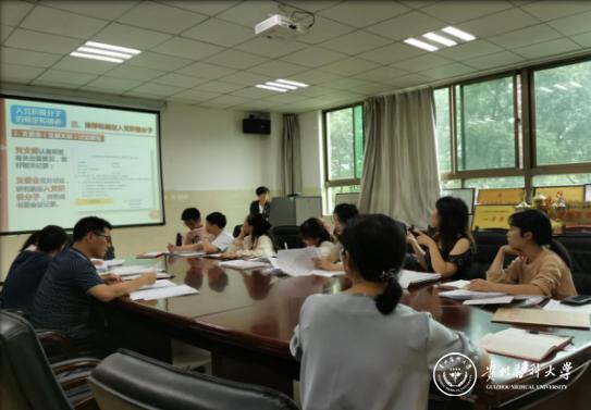院党委书记周红传达学习《中国共产党77779193永利官网第一次代表大会工作报告》,强调要紧紧围绕大会主题,高举中国特色社会主义伟大旗帜,坚持以习近平新时代中国特色社会主义思想为指导,团结带领广大教职医护员工生,统一思想、凝心聚力,攻坚克难、锐意进取,奋力谱写高水平医科大学建设新篇章。党委副书记肖绚就党支部标准化建设支部书记及支部委员职责进行了详细解读,让大家更明确自己的工作职责,明确权利与义务,更好地加强支部建设,正科级组织员付旎作“贵州省发展党员工作规程”培训,详细讲解了党员发展流程。